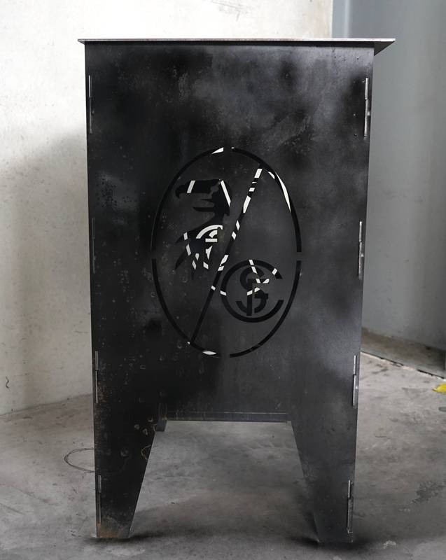 Ofen Feuerstelle für außen mit Sportclub Freiburg Kunst. Größe ca. 44 x 44 x 75 cm.