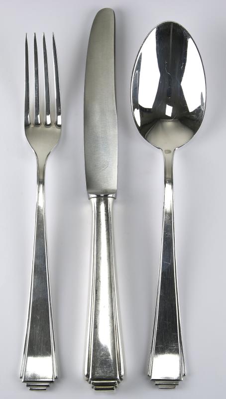 Deutsch um 1930. Jeweils 6 Gabeln, Löffel und Messer (Längen 21 - 23,5 cm). 90-er Versilberung und Herstellermarke BW. Guter Zustand.