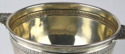 Frankreich, 19. Jahrhundert. Klassizistisch gestaltetes Schälchen. Innen ausvergoldet. Auf der Seite mit dem Minervakopf punziert, unter dem Boden VE. Größe ca. 16 x 10,5 cm, Höhe ca. 5,8 cm. Gewicht ca. 125 g. Altersbedingte Patina.