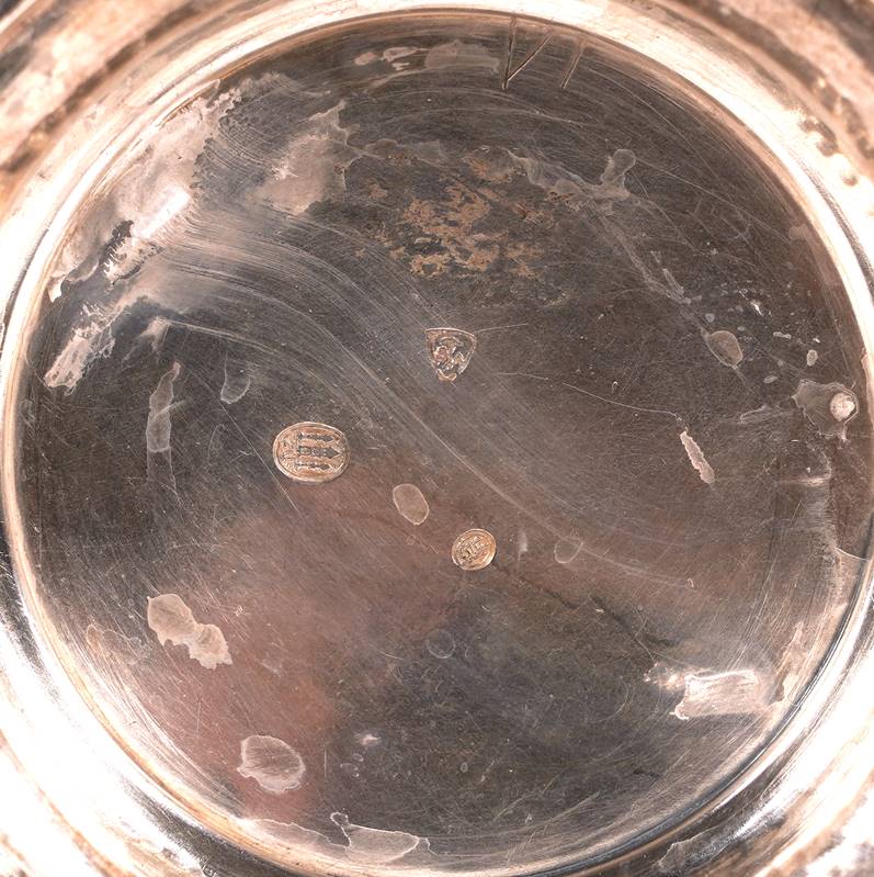 Kaffeekanne Kopenhagen 1920. Silber 830. Handhabe mit Beinscheiben abgesetzt. Unter dem Boden drei Türme sowie weitere ungedeutete Punzen. Größe ca. 24 x 14 cm, Höhe ca. 25 cm. Gewicht ca. 567 Gramm.