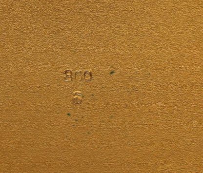Döschen mit Emaille Silber 800. Auf dem Deckel emaillierte Darstellung zweier Jockeys. Innen vergoldet. Innen im Deckel Feingehaltspunze. Größe ca. 7,5 x 5,5 cm, Höhe ca. 1,5 cm. Gewicht ca. 56 Gramm.