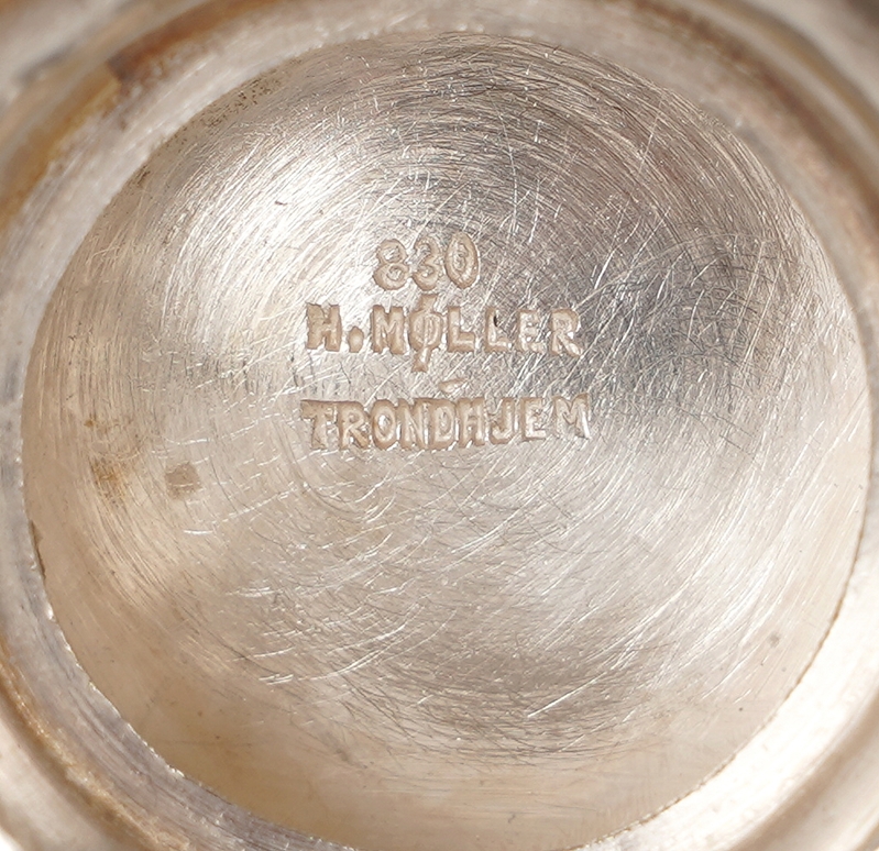 Kleiner Pokal Trondheim um 1900. Henrik Möller. Silber 830. Inschrift und Namenszug auf der Wandung. Innen vergoldet. Unter dem Boden punziert. Durchmesser ca. 6,5 cm, Höhe ca. 9,5 cm, Gewicht ca. 107,25 Gramm.
