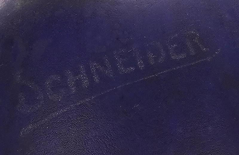 Um 1925. Runder Metallfuß mit Schaft, schwenkbaren Arm und Glaslampenschirm. Lampentulpe aus mattiertem Glas mit violetten und orangenen Pulvereinschmelzungen. Geätzte Signatur des Glaskünstlers Charles Schneider. Größe Fuß ca. 14 x 14 cm, Höhe ca. 56,5 cm, Durchmesser Schirm ca. 11,5 cm. Gewicht ca. 3,2 kg. Elektrifizierung nicht geprüft.