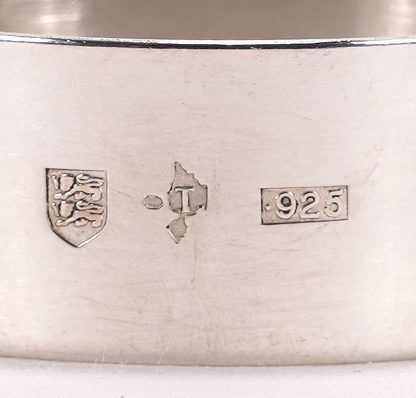 Acht Serviettenringe Guernsey 20. Jh. Sark Pottery & Silversmiths. Silber 925. Schlichte Mandelform. Mit Feingehaltspunze, sowie weiteren Punzen. Größe je ca. 5 x 3,5 cm. Gesamtgewicht ca. 186 Gramm. Zustand wie abgebildet, in Original Karton.