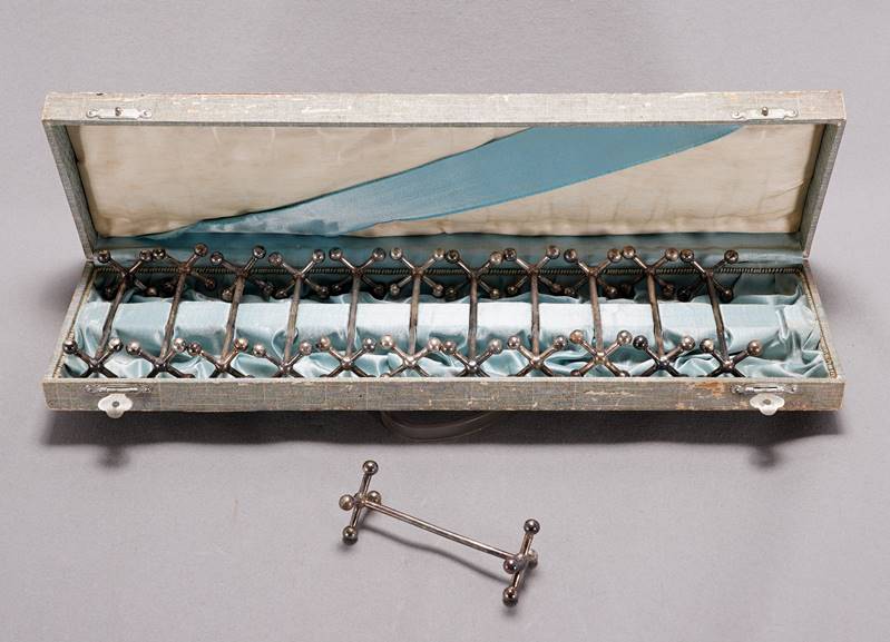 Messerbänkchen Versilbert. Zwölf Messerbänkchen auf Kugelfüßen. Länge ca. 9 cm. In Originaler Jugendstil-Schatulle. Mit altersbedingter Patina.