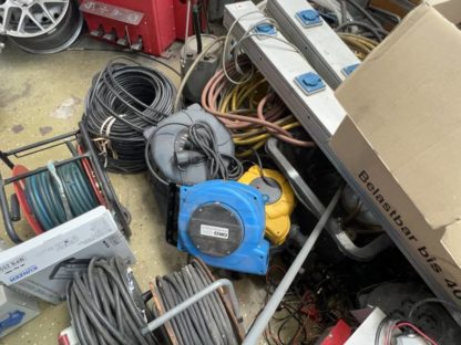 Konvolut Elektrokabel Große Anzahl von Kabeln, Kabeltrommeln, Ladegeräte. Dabei noch einige Hydraulikschläuche, wie abgebildet. Bitte selbst besichtigen.