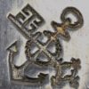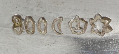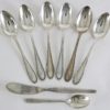 Silber 800 punziert, Halbmomd, Krone. Sechs Kaffeelöffel und zwei andere Teile. Gewicht ca. 147 Gramm.
