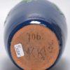 Kunsttöpferei Tonwerke Kandern unter Leitung von Prof. Max Laeuger, um 1900. Roter Scherben. Auf rundem Standring, eiförmiger Korpus, eingezogene Schulter, kurzer Mündungsrand. Blau engobiert, darüber in schwarzer, beiger und grüner Schlickermalerei Schling- und Blattdekor. Unter dem Boden eingeritzte Werkstattmarke der KTK sowie Modellnr. 706, daneben bezeichnet V. Durchmesser ca. 11 cm, Höhe ca. 22 cm. An der Mündung bestoßen.