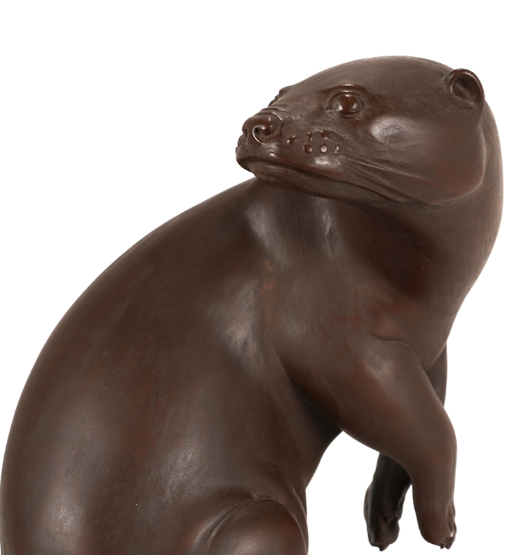 Meissen otter. 20th century Böttger Steinzeug. Design by Max Esser from the year 1931. Signed at the back. Sword mark and shape numbers under the bottom. Size approx. 11,5 x 11,5 cm, height approx. 24,5 cm. Enclosed is a certificate of authenticity from Kunst& Antiquitäten in Oberwaltersdorf from 2004 with a certified value of 1000 Euro. Good condition.