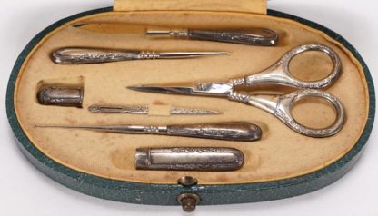 Nécessaire Deutsch um 1900. Silber 800. In originaler Schatulle. Punziert Halbmond, Krone Feingehalt 800 und Herstellerpunze HB. Größe ca. 10 x 17 cm, Höhe ca. 2,5 cm.