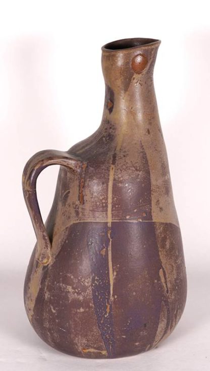 Bohnert, Herbert 1928 Lörrach - 1994 ebd. Keramik, mit Glasur in Lila und Weiß. Krug mit Handhabe in abstrakter Vogelform. Unten dem Boden eingepresste Signatur und Datum 1988. Größe ca. 23 x 23 cm, Höhe ca. 42 cm. Zustand wie abgebildet, bitte selbst besichtigen. Ehemaliger Kaufpreis 500 DM, Erwerbsjahr 1985. Bohnert studierte an der Kunsthandwerkschule in Bonndorf bei Walter Schelenz, der Kunstgewerbeschule in Basel bei Walter Bodmer sowie an der Accademia di Belle Arti di Brera in Mailand bei Marino Marini. Aus einer umfangreichen Markgräfler Kunstsammlung.