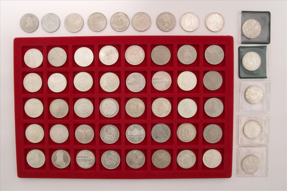 54 diverse 5-DM Münzen. Zustand wie abgebildet.
