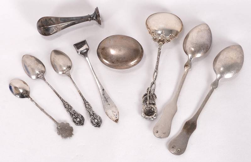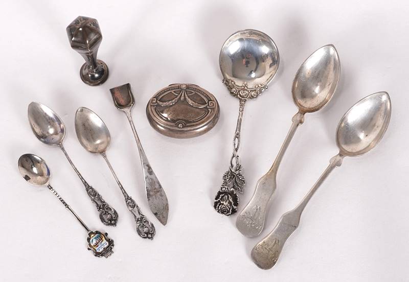 Konvolut Silber Diverse Silberteile mit unterschiedlichem Feingehalt ab 750. Ca. 9 Teile. Gesamtgewicht ca. 168 Gramm.
