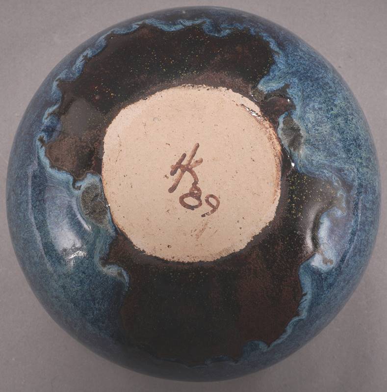 Kerstan, Horst 1941 Frankfurt - 2005 Kandern. Heller Scherben. Kugelvase mit blauer Glasur. Unter dem Boden mit Monogramm und Datierung (19)89. Durchmesser ca. 20 cm, Höhe ca. 12 cm.