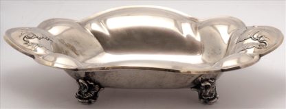 Freiburg 20. Jh. Silber 835. Barockform auf Rocaillenfüßen und tiefgemuldeter Fond. Unten punziert mit 835, Halbmomd und Krone sowie Formnummer 7403. Größe ca. 41 x 29 cm, Höhe ca. 9 cm, Gewicht ca. 900 Gramm.