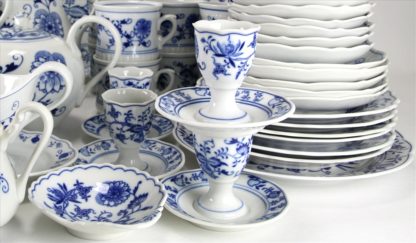 20. Jh. Insgesamt 63 Teile. Kaffeegeschirr, Teegeschirr, Speisegeschirr und viele zusätzliche Teile. Unterschiedliche blaue Manufakturmarken, meist Tschechoslowakei. Teils etwas Chips bzw. Schneidspuren.