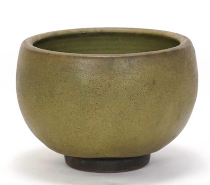 Bampi, Richard 1896 Amparo/Brasilien - 1965 Kandern. Cachepot. Roter Scherben. Eingezogener Stand, halbkugelförmiger Korpus. Mattgrüne Glasur. Unter dem Boden Pressstempel ca. 1944-65 und nummeriert 329. Durchmesser ca. 17 cm, Höhe ca. 12 cm.