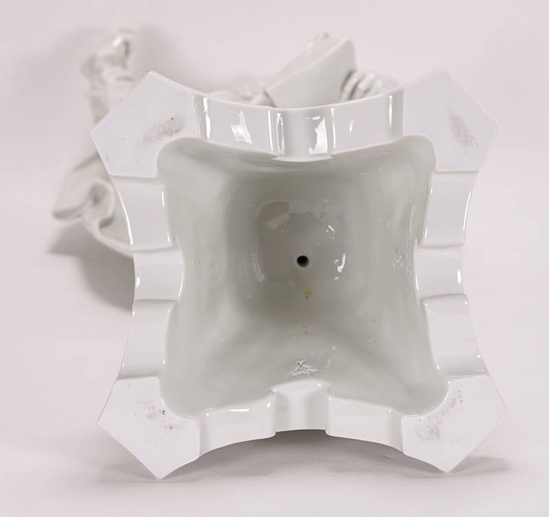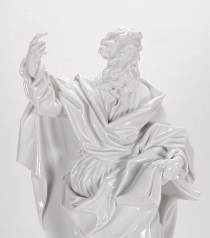 Paulus Meissen Porzellanmanufaktur Meissen 20. Jh. Porzellan. Der Apostel Paulus mit erhobenen Arm und wehendem Mantel. Modell von Johann Joachim Kaendler um 1740. Verso unten am Sockel unterglasurblaue Schwertermarke. Unter dem Boden geritzte Schwertermarke weiß, Formnummer 72029 sowie weitere Nummerierungen. Größe ca. 16 x 16 cm, Höhe ca. 47 cm, Gewicht ca. 5,1 kg. Aus einer umfangreichen, süddeutschen Privatsammlung.