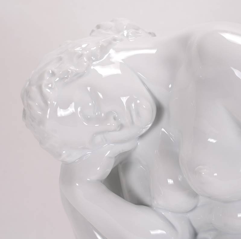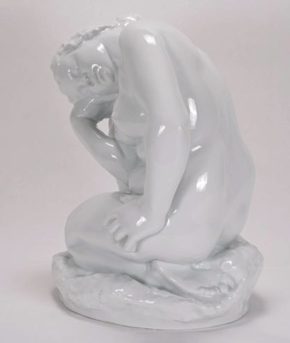 Weiblicher Akt Rosenthal, Selb 20. Jh. Porzellan. Schlafendes, kauerndes Mädchen. Entwurf Ernst Wenck 1927. Verso im Sockel signiert. Unter dem Boden unterglasurgrüne Marke. Größe ca. 21 x 25 cm, Höhe ca. 32 cm, Gewicht ca. 5,8 kg.