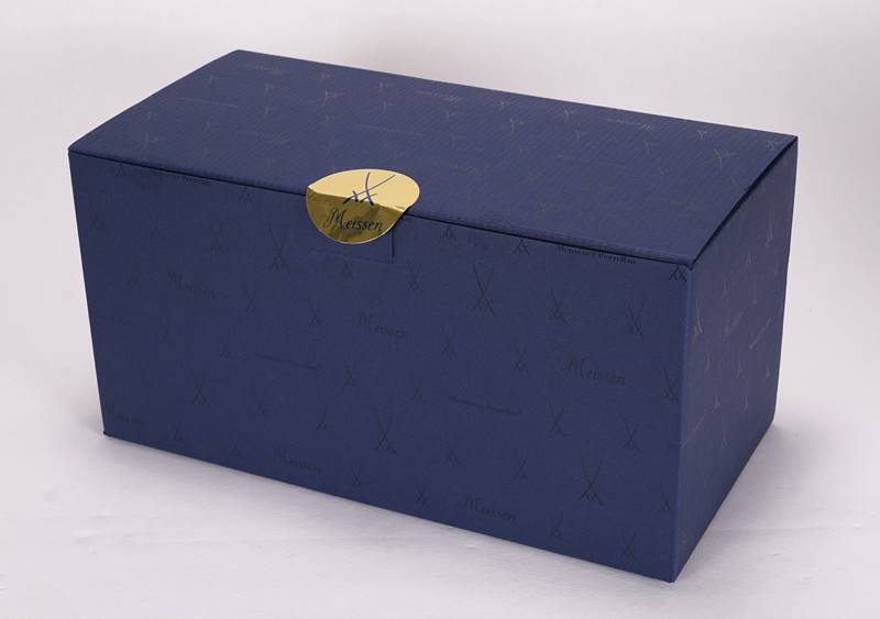 Porzellanmanufaktur Meissen 20. Jh. Aus dem Schwanenservice, entworfen für Heinrich Graf von Brühl. Reliefierte Wandung, teils polychrom gefasst und goldstaffiert. Unter dem Boden unterglasurblaue Schwertermarke, 1. Wahl, sowie Formnummern und Malermarke. Größe ca. 15 x 11 cm, Höhe ca. 22 cm. Im Original-Karton.
