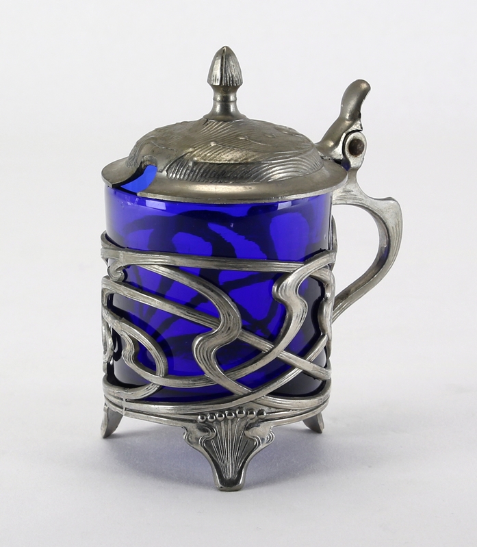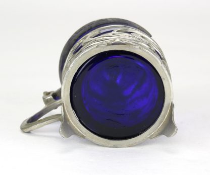 Deutsch um 1910. Wohl WMF. Zinnmontur und kobaltblaues Glas. Durchmesser ca. 8 x 5,5 cm, Höhe ca. 9 cm.