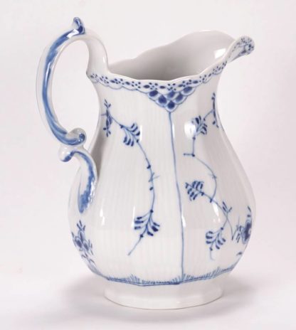 Wasserkrug Royal Copenhagen Königlichen Porzellanmanufaktur, Kopenhagen, 20. Jh. Musselmalet Halbspitze. Unter dem Boden unterglasurgrüne Manufakturmarke, unterglasurblaue Wellenmarke sowie Nummerierung 646. Größe ca. 18 x 13 cm, Höhe ca. 19,5 cm. Oben auf der Handhabe winziger Chip.