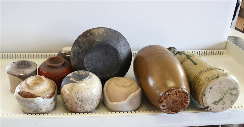20. Jh. Insgesamt 18 Teile Künstlerkeramik ( art pottery ) in diversen Formen und Farben. Teils verschiedene Marken bzw. Signaturen (einmal Ruhlmann). Höhe bis ca. 43 cm. Zustand wie abgebildet, bitte selbst besichtigen.