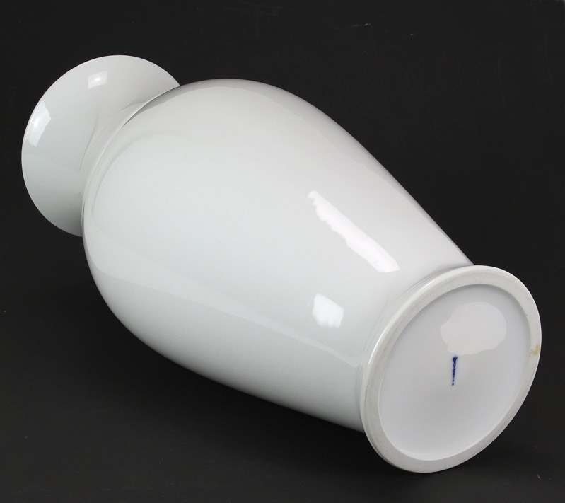 Vase Königliche Porzellanmanufaktur Berlin 1980. Porzellan. Schlanke Bodenvase des Entwurfs Drache, der aus dem Jahr 1890 stammt. Unter dem Boden unterglasurblaue Zeptermarke mit Punkt. Durchmesser ca. 20 cm, Höhe ca. 45 cm. Guter Zustand.