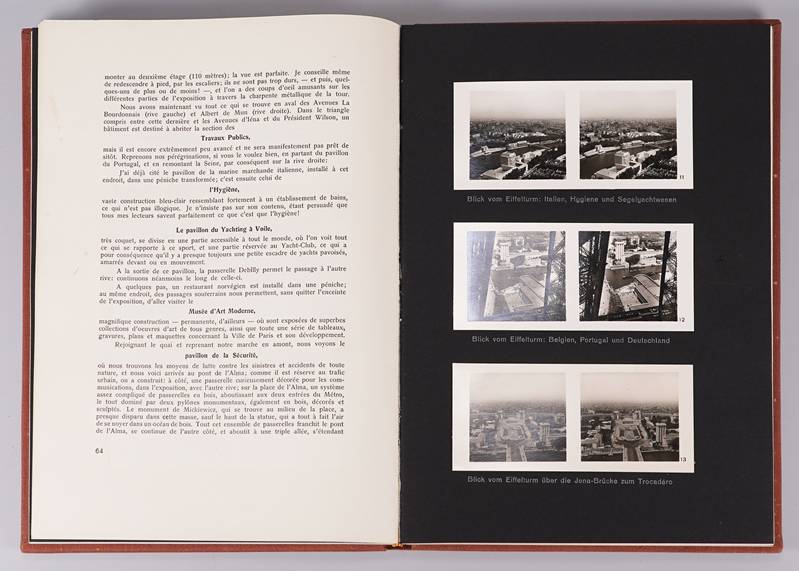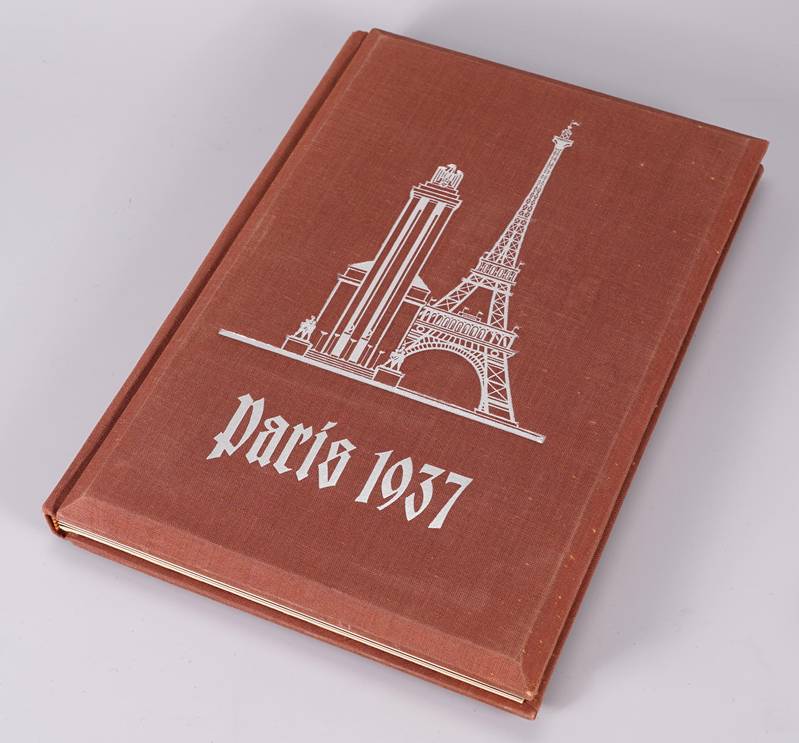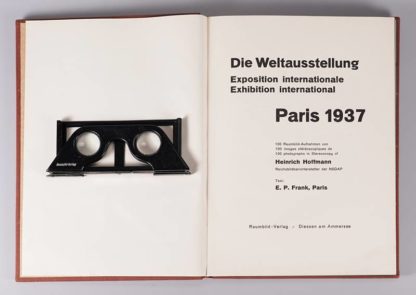 Paris 1937 Die Weltausstellung Paris 1937. 100 Raumbildaufnahmen von Heinrich Hoffmann, Text: E.P. Frank, Paris. Raumbild-Verlag, Diessen am Ammersee 1937. Mit Raumbildbetrachter im Buchdeckel und Bildern zur Weltausstellung. Größe ca. 30 x 21 cm.