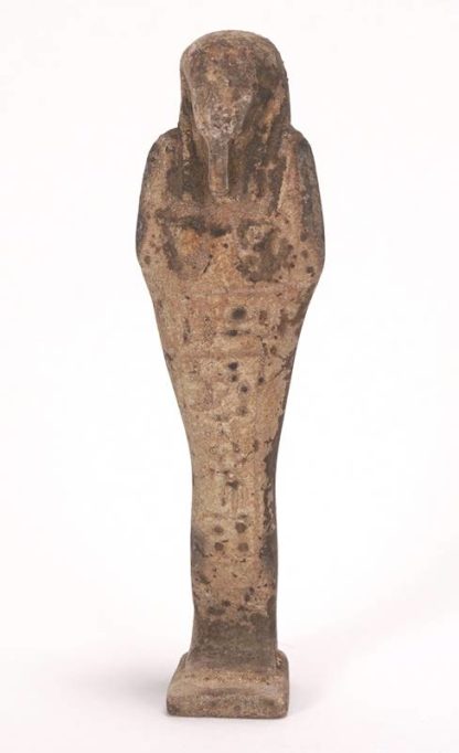 Ägypten wohl Spätzeit um 600 v. Chr. Fayence mit Resten blau-grüner Glasur. Mumienförmige Grabbeigabe mit vor der Brust gekreuzten Armen. Darunter Hieroglyphenreihen. Größe ca. 3,5 x 2,5 cm, Höhe ca. 11,3 cm, Gewicht ca. 42 Gramm. Teils berieben und bestoßen. Altersbedingter Zustand wie abgebildet. Aufgrund der schwierigen Sachlage kann keine Garantie für Herkunft oder Alter übernommen werden. Bitte besichtigen Sie selbst. Aus einer Frankfurter Privatsammlung mit Provenienz teils aus der Spezialfunktion Sammlung ägyptischer Kunst Auktionshaus Weidler 2006 und anderen Auktionshäusern im Raum Frankfurt. Wir machen darauf aufmerksam, dass dieser Gegenstand nicht aus Deutschland ausgeführt werden darf.