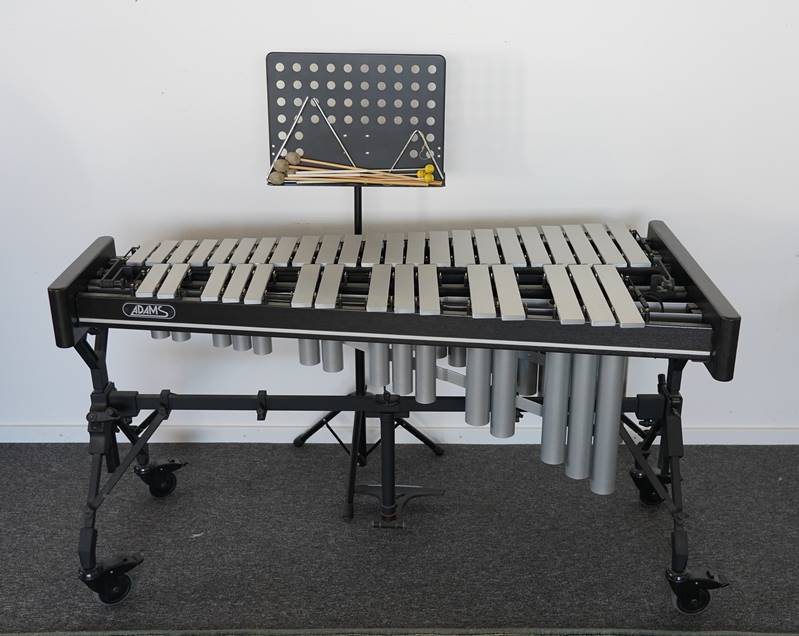 Laut Hersteller Solist Serie ohne Seriennummer. Auf dem rollbarbaren Unterteil mehrfach bezeichnet mit Hersteller und Pat. 290303642. Größe ca. 152 x 74 cm, Höhe verstellbar. Guter Zustand, klingt in unseren Ohren gut. Dabei einige Schlägel, zwei Triangeln und ein Notenständer.