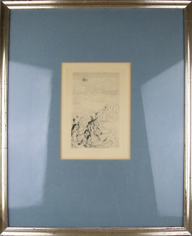 1841 Limoges - Cagnes-sur-Mer 1919. Sur la Plage à Berneval (1892). Radierung. Unten rechts im Druck signiert. Größe ca. 116 x 75 mm, Plattenrand ca. 135 x 92 mm, hinter Passepartout und Glas gerahmt ca. 37 x 30,5 cm.