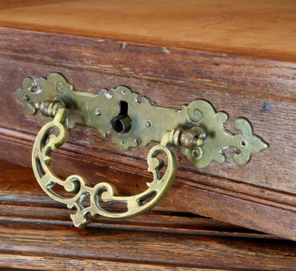 Nach 1900. Eiche. Kapitales Möbel mit einem zweitürigen Unterteil mit zwei Kopfschubladen und architektonisch gearbeitetem Aufsatz mit zwei Türen und Ablagen über profilierten Vollsäulen mit Rückwand und Ablage mit Geländer. Größe ca. 147 x 72 cm, Höhe komplett ca. 215 cm. Teils etwas besch.