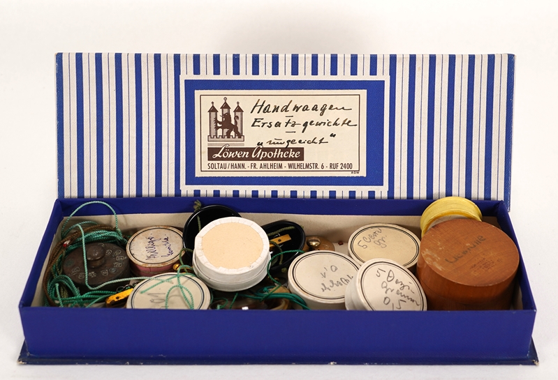 Convolute of weights. Various weights and scales. Various materials. Not complete, not belonging together. See illustrations.