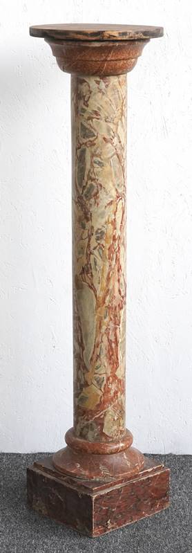 Blumensäule Deutsch um 1900. Holz, in Steinoptik gefasst. In Form einer klassischen, dorischen Säule. Größe ca. 22 x 22 cm, Höhe ca. 107 cm. Teils bestoßen, teils berieben.