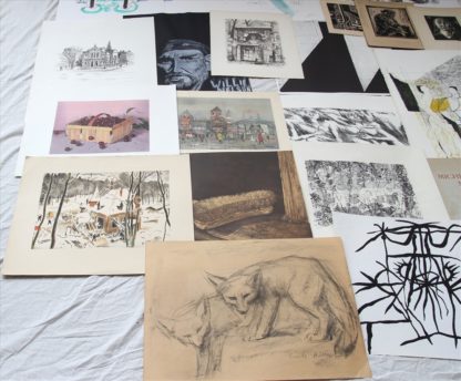 Teils Handzeichnungen, Graphiken, Drucke etc. Ca. 36 Blätter plus zwei Mappen (Michelangelo, Vogelbilder). Bitte selbst besichtigen.