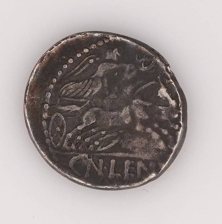 Römische Republik, 88 v. Chr. Cn.Cornelius LentulusMarcellinus. Büste des Mars und Victoria in Biga. Durchmesser ca. 17,2 - 18,2 mm. maximale Dicke ca. 1,9 mm. Gewicht ca. 2,6 Gramm. Cr.345 Syd.702. Zustand wie abgebildet.