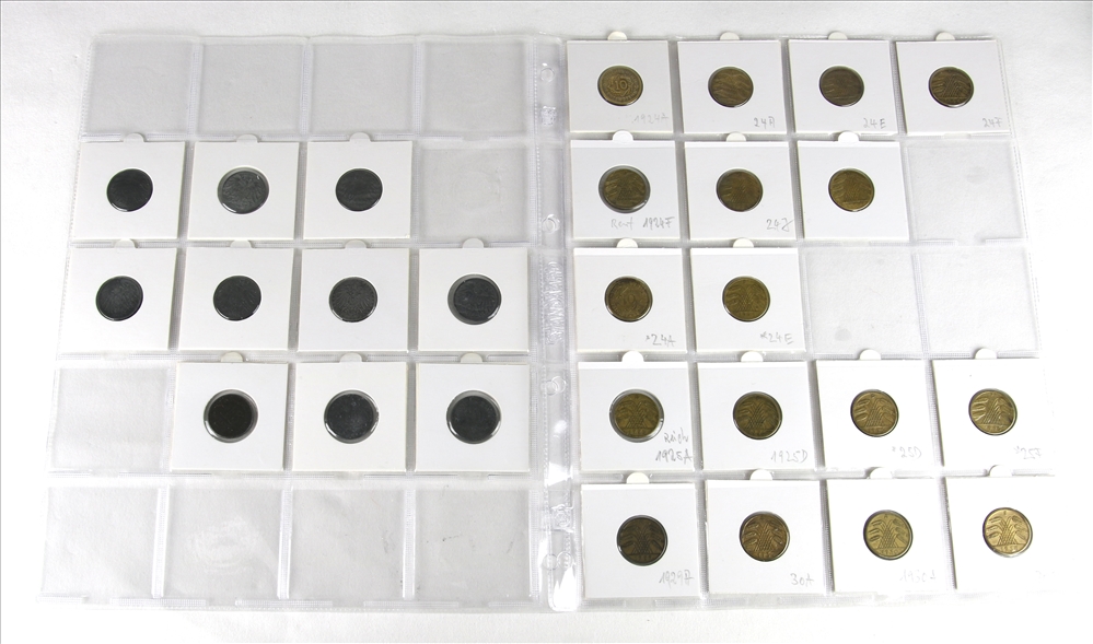 Weimarer Republik. 10 Pfennig Stücke bis 500.- RM (Inflation). Insgesamt 82 Stück. Unterschiedliche Jahrgänge und Qualitäten. Wie abgebildet, für Selbstbesichtiger.