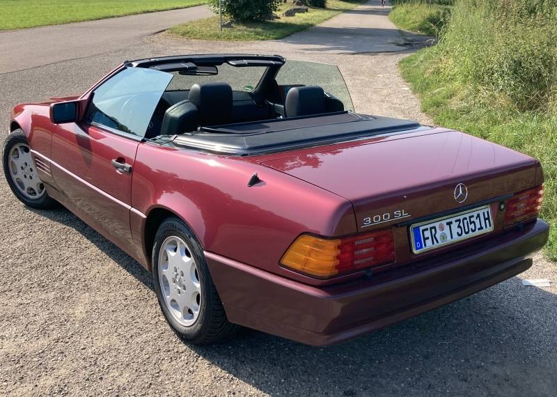 Baujahr 4/1991. Pagode Cabrio mit originalem Hardtop (mit fahrbarem Aufbewahrungsständer). 6-Zylinder Motor mit 140 KW und Automatikgetriebe. Das Fahrzeug hat ein H-Gutachten (liegt bei) und ist im Moment auch mit H-Kennzeichen zugelassen. Hier ein Auszug aus dem Gutachten vom 24.06.2021. Seltener Mercedes 300SL in außergewöhnlich gutem Zustand. Km Stand im Moment (ca. 167.000 Kilometer, der Wagen wird bewegt, deshalb sind sicher bis zur Auktion einige Kilometer mehr darauf gefahren). Sowohl Motor / Getriebe, die Karosserie als auch die Innenausstattung sind im Original Zustand. Der Wagen ist rostfrei und ungeschweißt. Fazit: Unter Berücksichtigung aller Einzelergebnisse kann gesagt werden, dass dieser Mercedes 300 SL einen insgesamt sehr guten Allgemeinzustand aufweist. Die Technik ist hervorragend. Der Lack ist nahezu perfekt! Die durchgeführten Arbeiten wurden ausschließlich von Fachwerkstätten durchgeführt. Der Wagen ist unfallfrei. Der Wagen ist in sehr gutem Zustand. Zusammenfassung der Zustandsnoten der Einzelkategorien: Karosserie und Anbauteile: 2 Rahmen- / Bodenanlage: 2 Interieur: 2 Motor und Antrieb: 2 Fahrwerk: 2 Der Gesamtzustand des Fahrzeuges entspricht der Note "2". Marktwert: 19.000.- Euro. Wiederbeschaffungswert 22.000.- Euro.