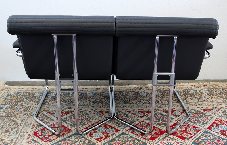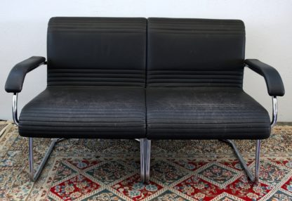 Girsberger 1960-er Jahre. Chrom und graues Leder. Größe ca. 136 x 80 cm, Höhe ca. 80 cm, Sitzhöhe ca. 42 cm.