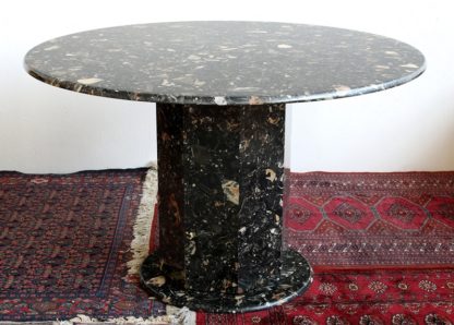 Klares modernes Design aus den 1980-er Jahren. Schwarzer, achteckiger Marmorfuß (hohl gearbeitet) und massive runde Platte. Durchmesser ca. 120 cm, Höhe ca. 75 cm.
