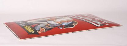 Emailschild, gewölbt und schabloniert mit Umdruck. 1920er Jahre. Brauhaus Dinkelsbühl, Gehring & Höhenberger. Der Genießer trinkt Kieser. Kleine, uniformierte Figur, welche einen übergroßen Bierkrug umarmt und den Bierschaum trinkt. Vor rotem Hintergrund. Unten bezeichnet C. Robert Dold, Offenburg i.B. Größe ca. 33 x 49 cm. An den Ecken teils beschädigt und ausgebessert. Leuchtende Farben und schöner Glanz. Bitte beachten Sie die Fotos.