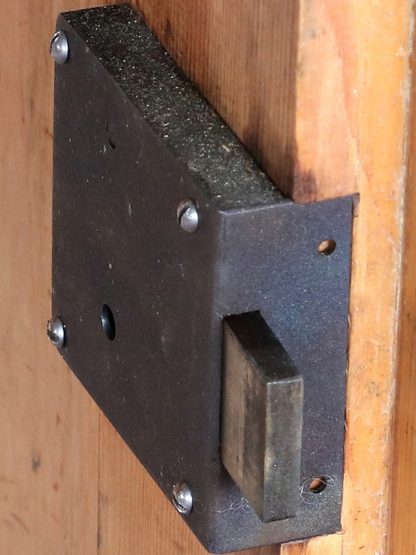 Deutsch um 1900. Nadelholz. Zweiteiliges Aufsatzmöbel mit zwei Türen und zwei Schubladen sowie einem zurückgesetzten Aufsatz mit zwei verglasten Türen. Größe ca. 125 x 49 cm, Höhe gesamt ca. 190 cm. Ein Schlüssel vorhanden. Guter, restaurierter Zustand.