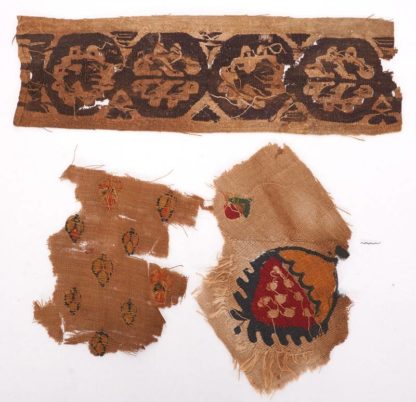 Konvolut Koptische Textilfragmente Wohl Ägypten. Ca. 7 Textilfragmente. Teils ca. 10. Jh., teils jünger, teils polychrome Wirkerei auf Leinen, teils weiße Wirkerei auf braunem Grund, verschiedene Größen. Maximale Größe ca. 27 x 8,5 cm.