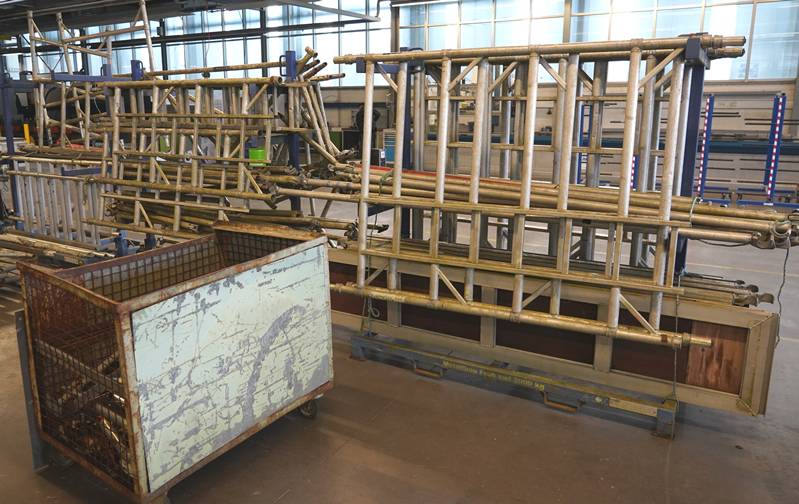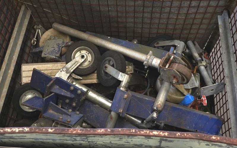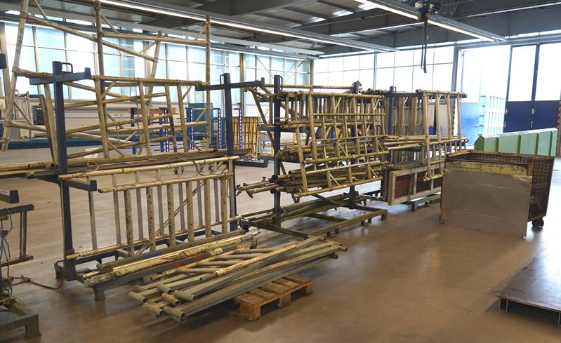 Rollgerüst auf vier Transportgestellen bzw. wagen und eine Palette.