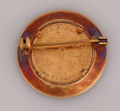 Brosche mit Gold Medaille Brosche 585 nicht punziert, geprüft, Durchmesser ca. 23,5 mm und eine Medaille John F. Kennedy aus Gold 585. Gewicht zusammen ca. 3,9 Gramm. Zustand wie abgebildet.
