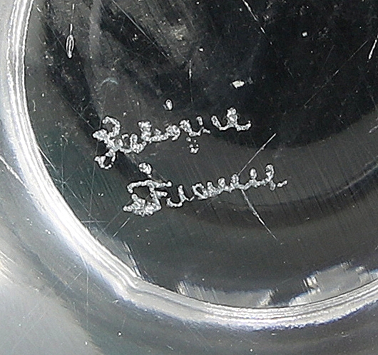 Runde Form mit Kranz aus mattgeätzten Vögeln. Unter dem Boden Signatur. Durchmesser ca. 12 cm, Höhe ca. 12,5 cm. Winziger, wohl fabrikbedingter Fehler an einem Vogel.