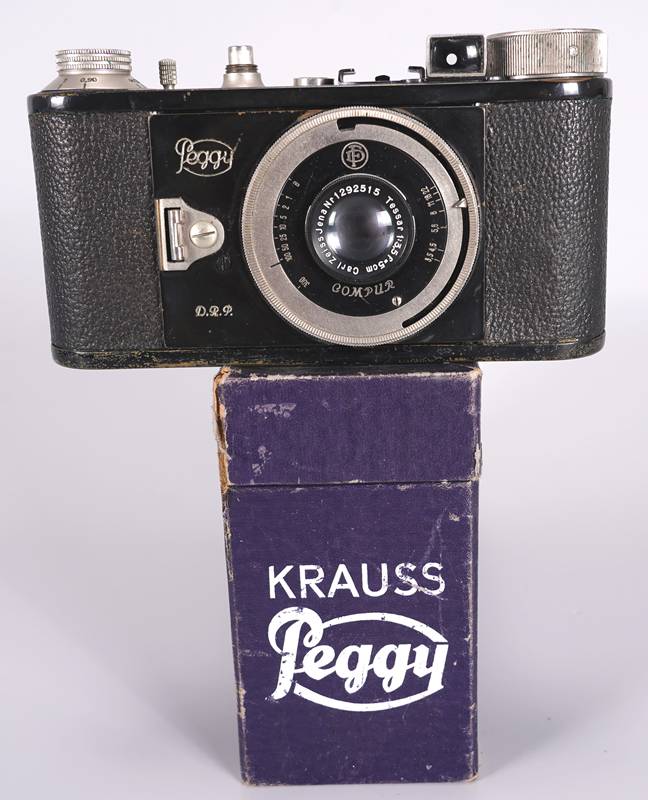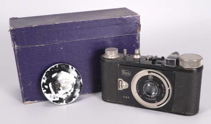 G. A. Krauss Stuttgart. Tessar 1:3,5 f=5 cm. In Original-Karton. Funktion nicht geprüft, bitte selbst besichtigen.