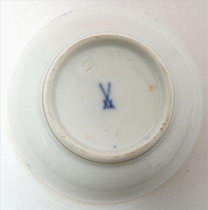 Kaffeeservice 20. Jh. Form Neuer Ausschnitt mit Dekor Aquatinta mit blauen Blumenbukets, Insekten und Goldhöhung. Unter dem Boden unterschiedliche Schwertermarken teils mit Beistrichen, teils auch Durchschliffe. Komplett für sechs Personen mit je sechs Tassen mit Unteren und Kuchentellern, Kaffeekanne, Zuckerdose, Sahnegießer und großer Platte. Zusätzlich vier weitere Tassen und ein Kuchenteller. Insgesamt 27 Teile. Guter Zustand, teils minimal bestossen.