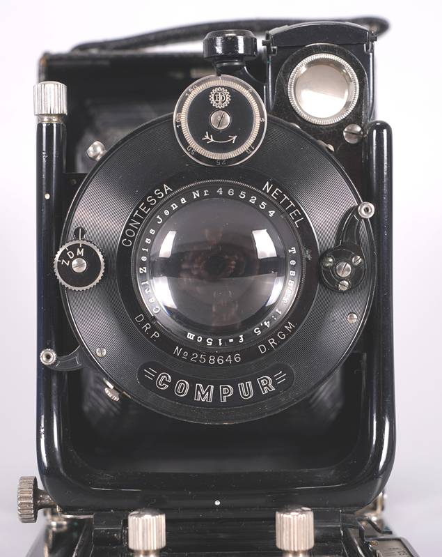 Contessa Nettel Adoro Faltkamera mit Tessar 1:4,5 f=15cm. Nr. 258646. Funktion nicht geprüft, bitte selbst besichtigen.